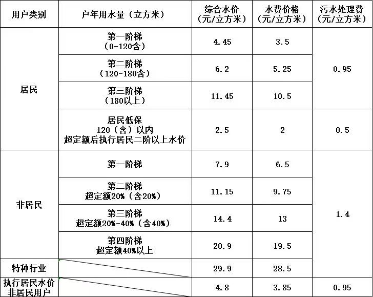 承德供水水費(fèi)單價(jià)標(biāo)準(zhǔn)表