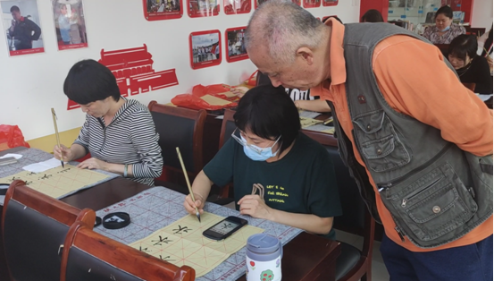 在自由練習(xí)時(shí)間,老師手把手教小組成員手握毛筆正確姿勢(shì),示范毛筆字基本筆畫,引導(dǎo)大家規(guī)范書寫,感受書法藝術(shù)的魅力,為大家上了一堂生動(dòng)的書法課。小組成員們興致盎然,聚精會(huì)神地書寫自己的作品,從中體會(huì)書法的美學(xué)特點(diǎn)以及行筆規(guī)范,盡情享受著書法帶來的樂趣。同時(shí)各位小組成員積極交流,互相探討學(xué)習(xí)書法的興趣及心得,大家紛紛表示,書法能靜心、修身、養(yǎng)性,能提高自己的修養(yǎng)、氣質(zhì)、內(nèi)涵,大家都會(huì)懷著端正的態(tài)度去學(xué)習(xí),勤學(xué)苦練,感悟書法的魅力。
