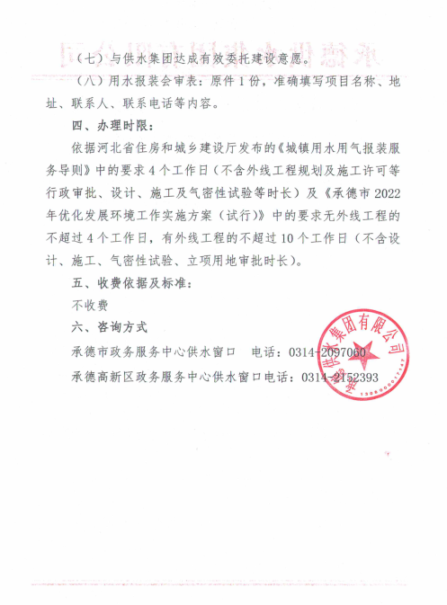 信息來源:承德供水